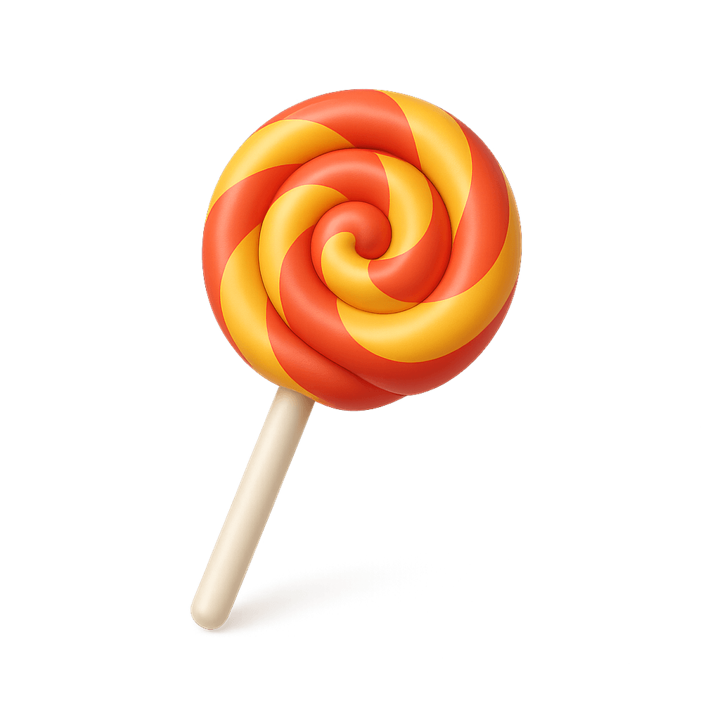A lollipop is a sweet, flavored candy mounted on a stick, designed to be licked or sucked. Popular among children and available in a variety of colors and flavors, lollipops are a classic treat often found at parties and candy shops.