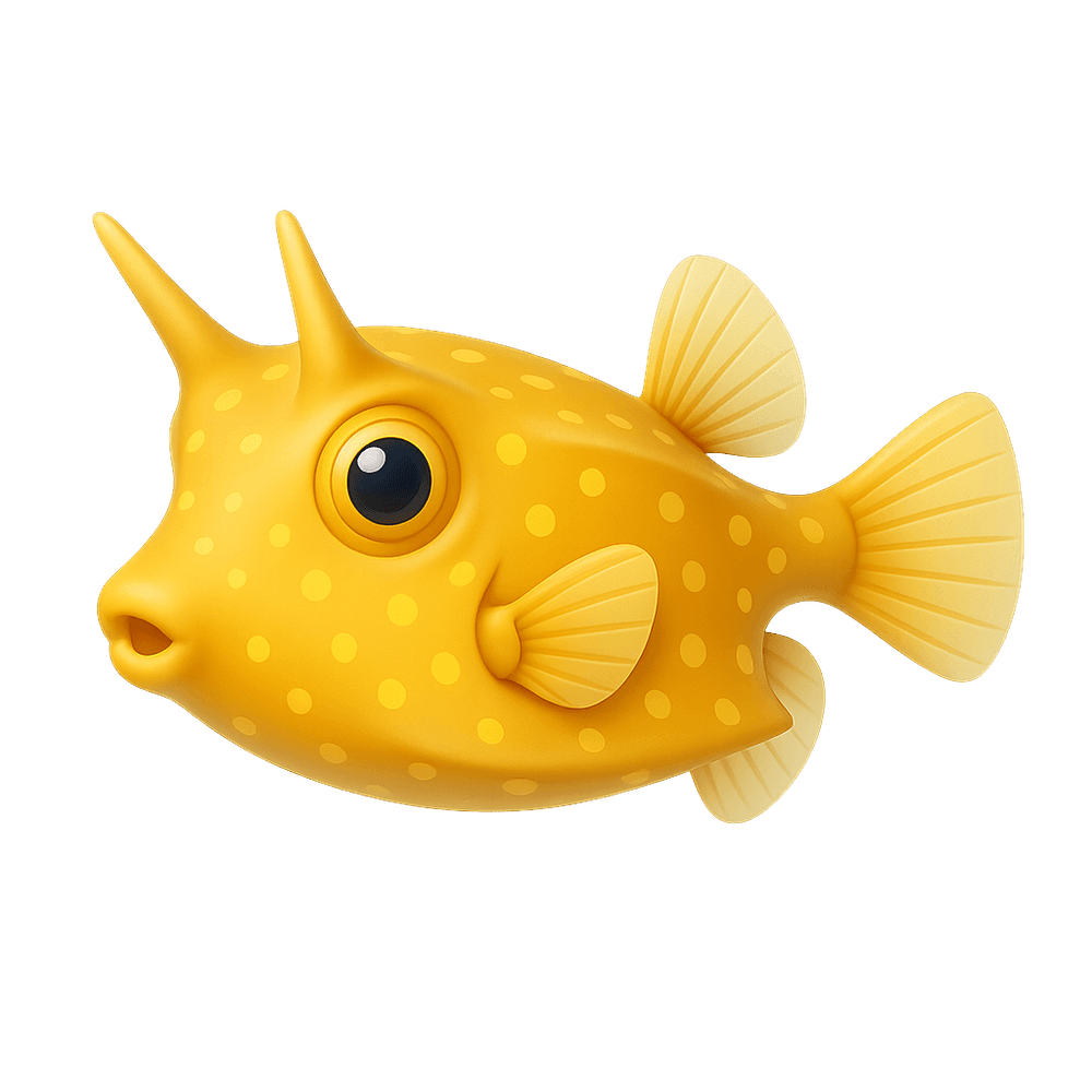 The Longhorn Cowfish is a distinctive, box-shaped marine fish known for its long, horn-like projections extending from its head. Found in warm ocean waters, this brightly colored fish uses its unique shape and toxic defense to deter predators.