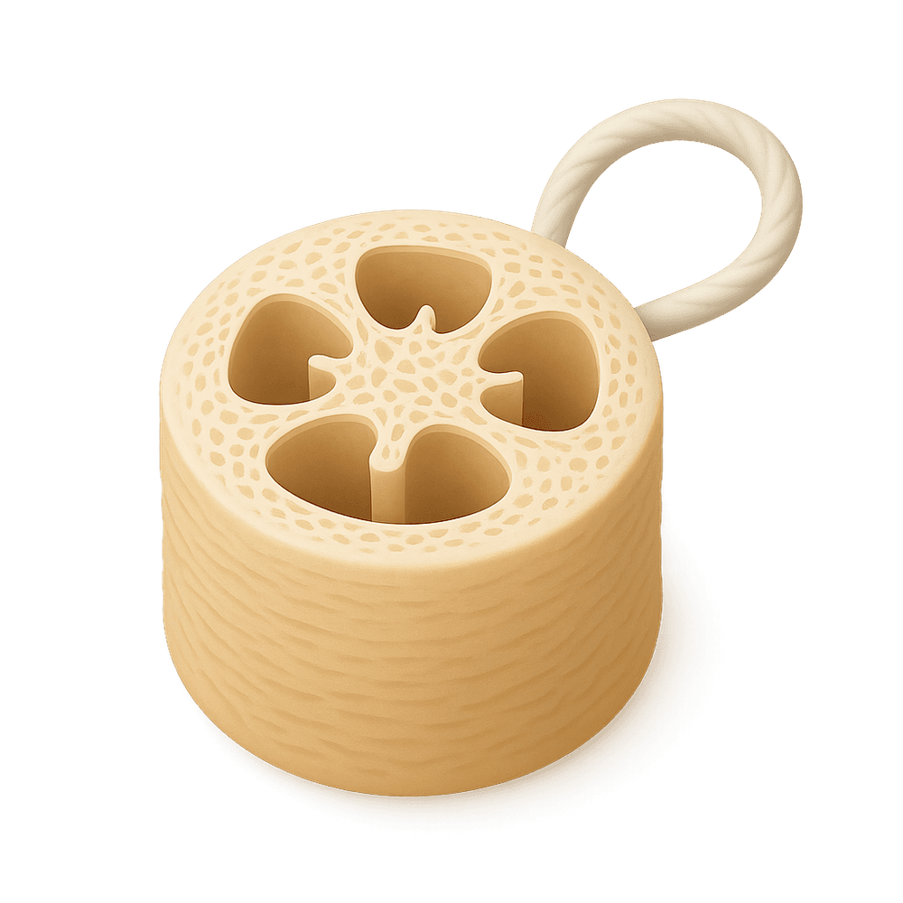 A loofah is a natural or synthetic sponge used for exfoliating and cleansing the skin, commonly found in bathrooms and used during bathing or showering routines.