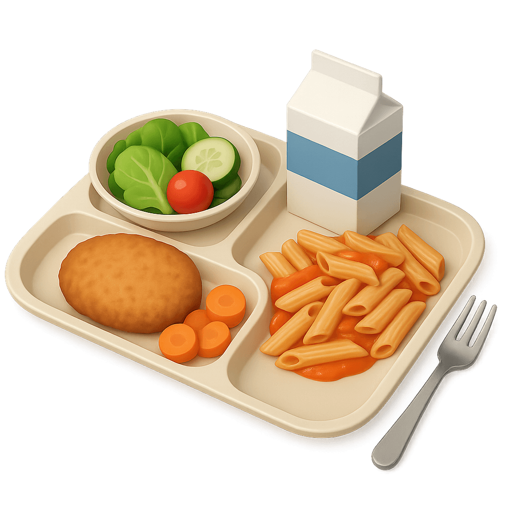 A lunch tray is a flat, compartmentalized tray used to carry and organize food, typically in cafeterias, schools, hospitals, and workplaces. It helps serve meals efficiently and keeps different food items separated.