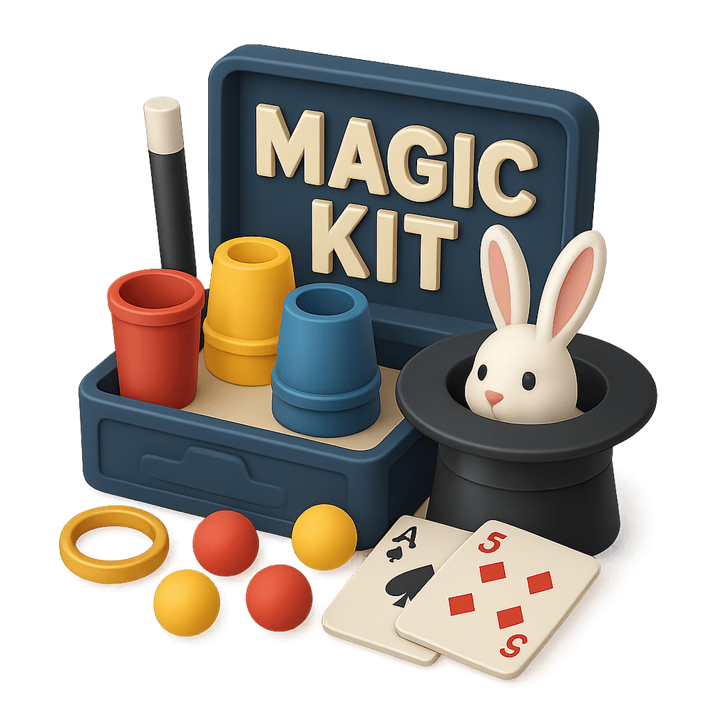 A magic kit is a set containing props and instructions for performing magic tricks. It is designed for entertainment, allowing users to learn and perform illusions and sleight-of-hand tricks for fun or at parties.