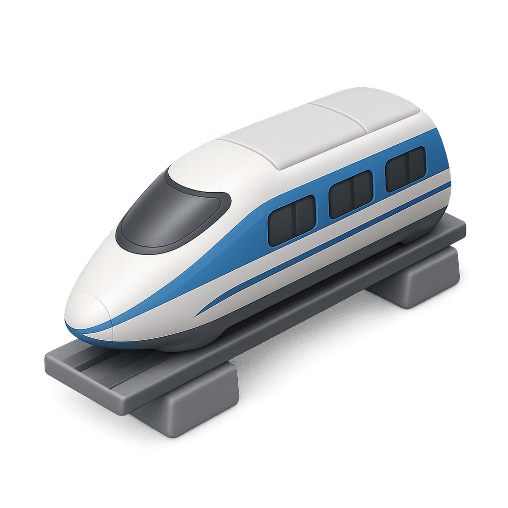 A high-speed train that uses magnetic levitation to glide above the tracks, reducing friction and allowing for extremely fast and smooth travel. Maglev trains are powered by electricity and are known for their efficiency, quiet operation, and minimal environmental impact compared to traditional rail systems.