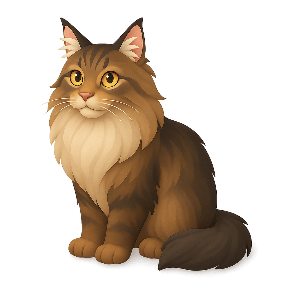 The Maine Coon is one of the largest domesticated cat breeds, known for its long, thick fur, bushy tail, and friendly, intelligent personality. Originating from North America, this breed is popular as a family pet due to its gentle and sociable nature.