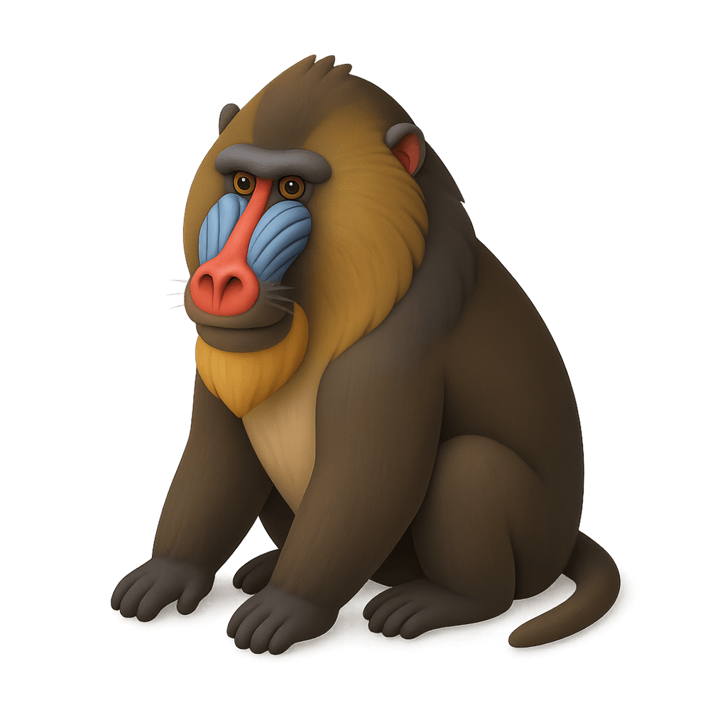 The mandrill is a large, colorful primate native to the rainforests of Central Africa. Known for its striking blue and red facial markings and social behavior, it is one of the most distinctive and recognizable monkeys in the world.
