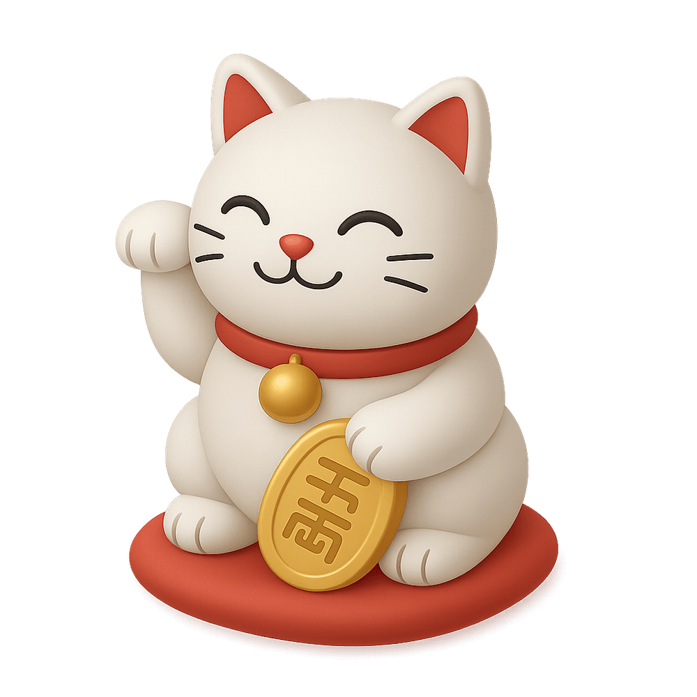 A Maneki-neko is a traditional Japanese figurine of a beckoning cat, believed to bring good luck and fortune to its owner. Commonly displayed in homes, shops, and restaurants, it is a popular symbol in everyday life and culture.
