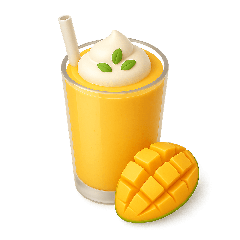 A Mango Lassi is a popular Indian beverage made from ripe mangoes, yogurt, milk, and sugar, blended into a creamy, refreshing drink. It is often enjoyed chilled and is known for its sweet, tangy flavor and smooth texture.