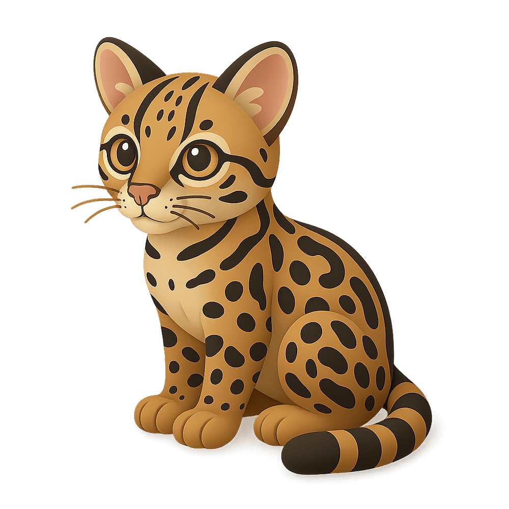 The margay is a small, nocturnal wild cat native to Central and South America. Known for its remarkable agility, it can climb trees and leap between branches with ease, making it one of the most arboreal cats in the world.