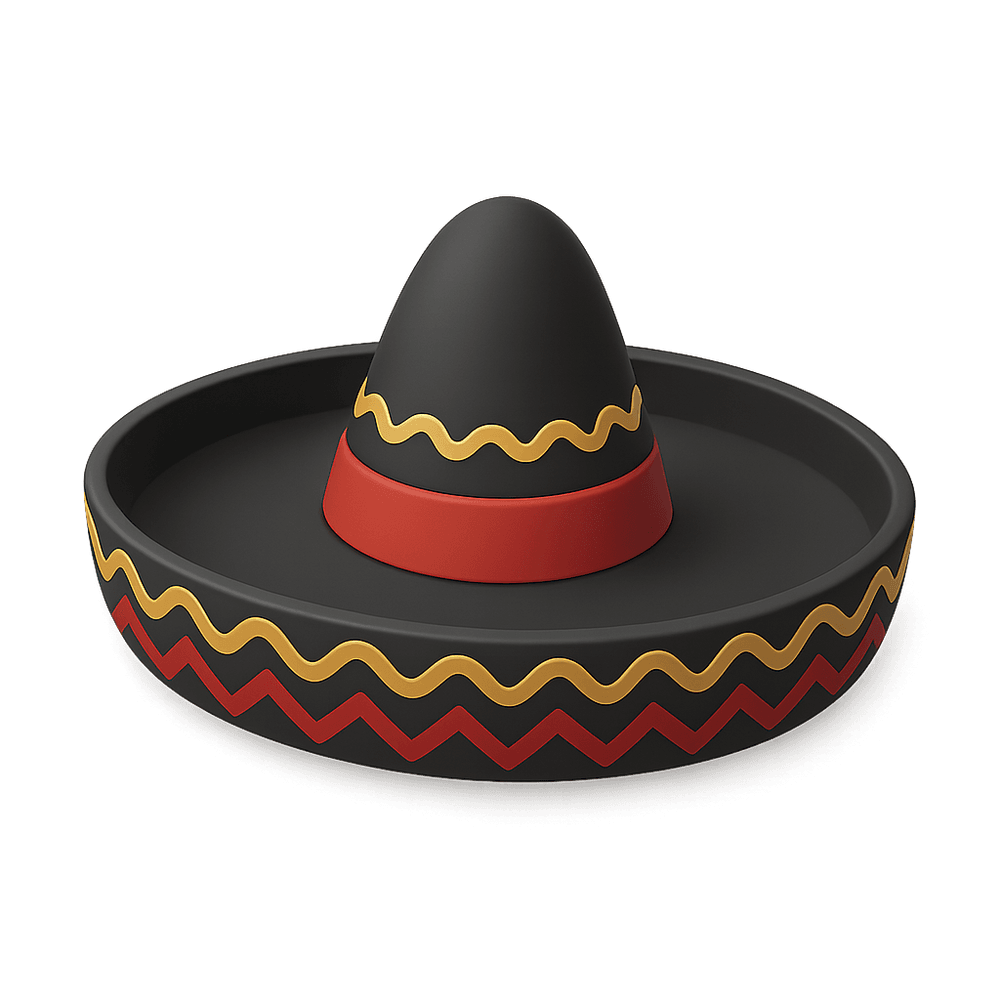 A Mariachi hat, also known as a sombrero, is a traditional wide-brimmed, elaborately decorated hat worn by mariachi musicians. It is an iconic symbol of Mexican culture and is often used in festive and musical settings.