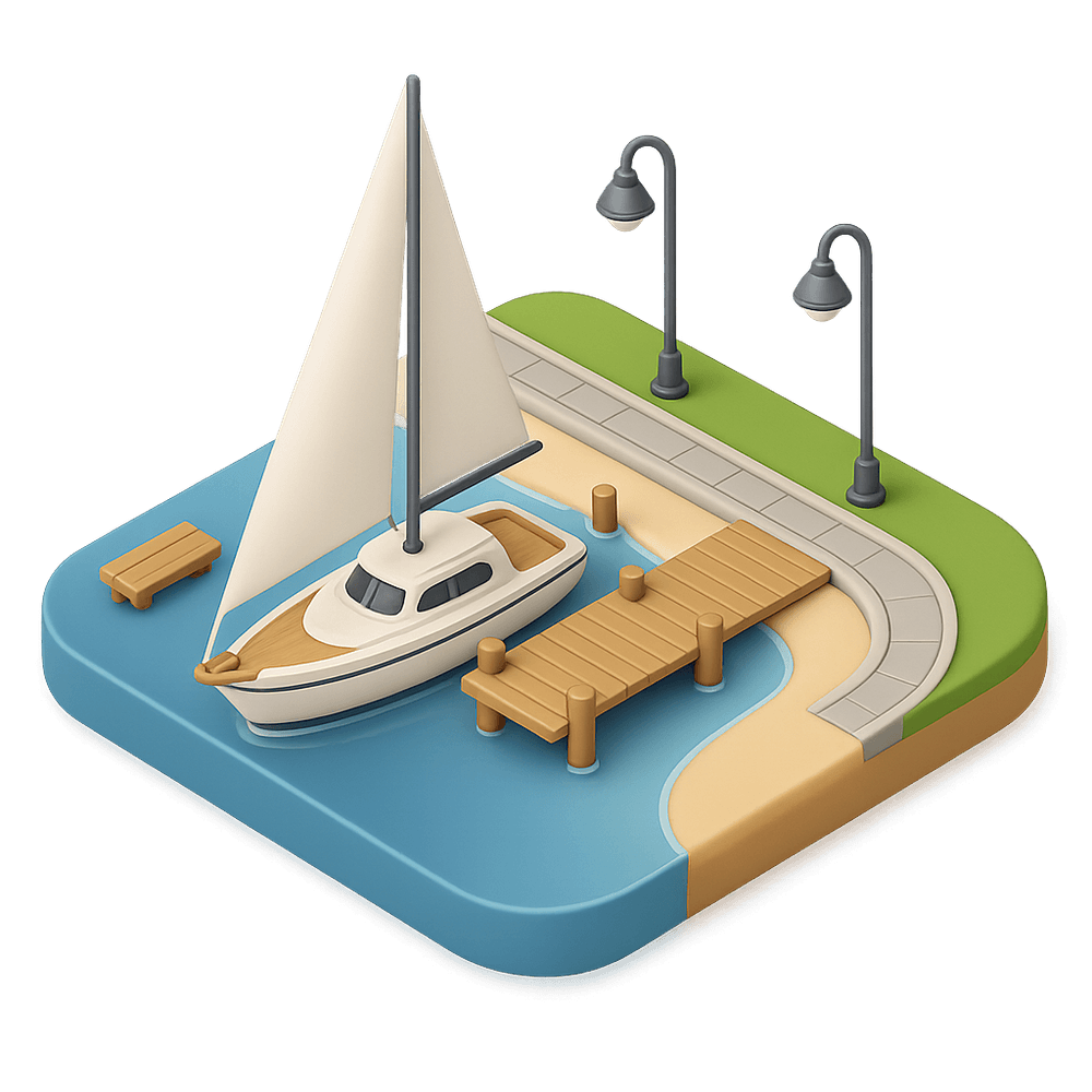 A marina is a specially designed harbor with moorings and facilities for pleasure boats and yachts. It often includes docks, walkways, and services for boaters, making it a hub for recreational boating and waterfront activities.
