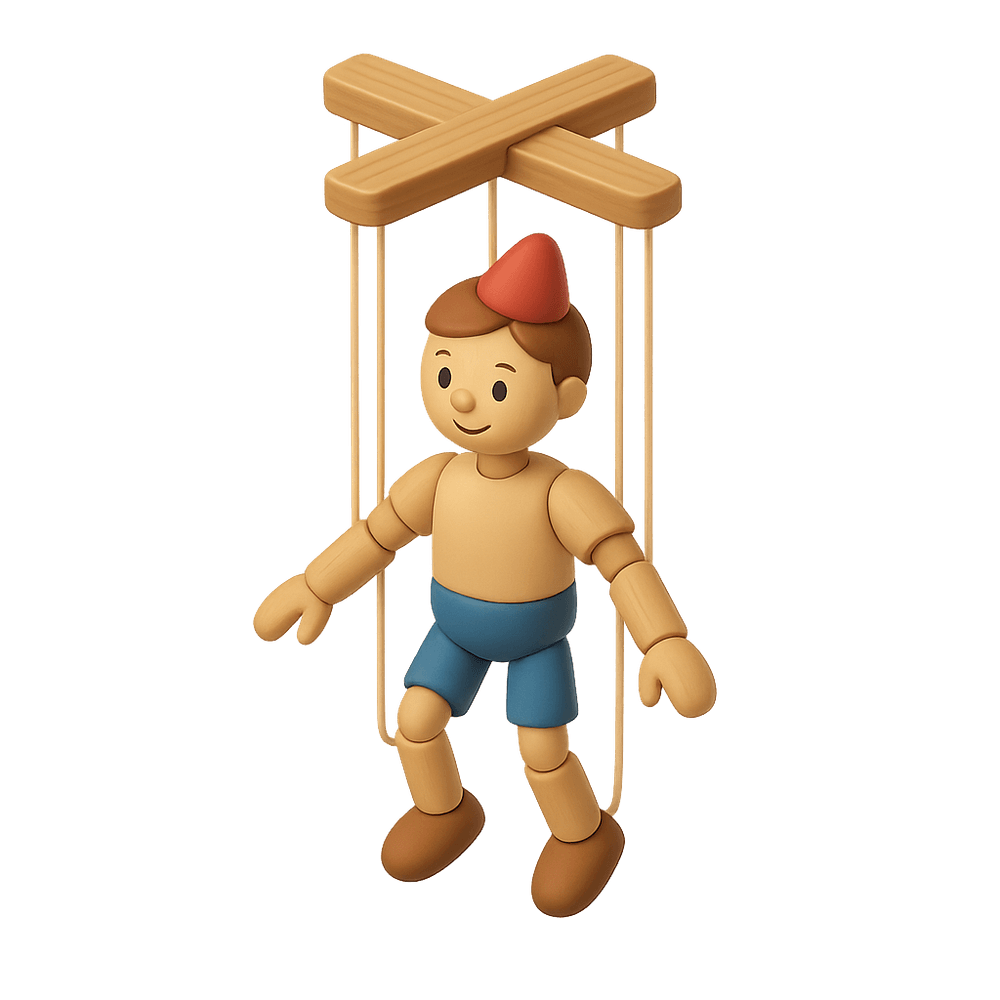 A marionette is a type of puppet controlled from above using wires or strings, often used in theatrical performances to entertain audiences with lifelike movements and storytelling.