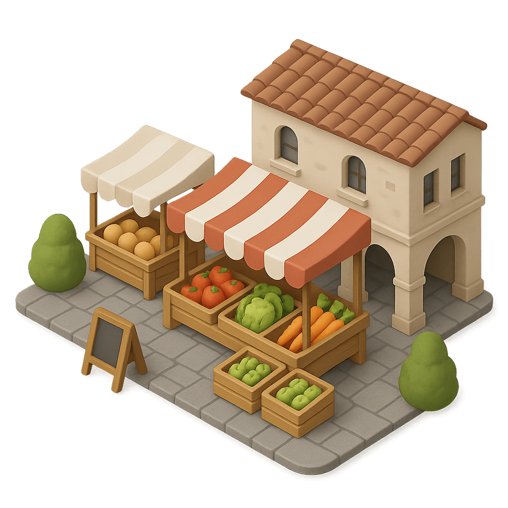 A central open area in a town or city where vendors gather to sell goods, often serving as a hub for commerce, social interaction, and public events. Market squares are typically surrounded by important buildings and are a focal point of community life.