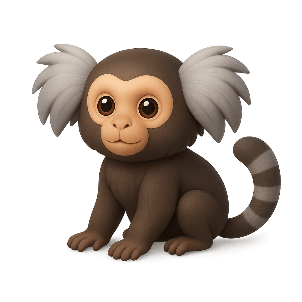 A small, agile New World monkey native to South America, known for its expressive face, long tail, and social behavior. Marmosets live in trees and feed on insects, fruit, and tree sap.