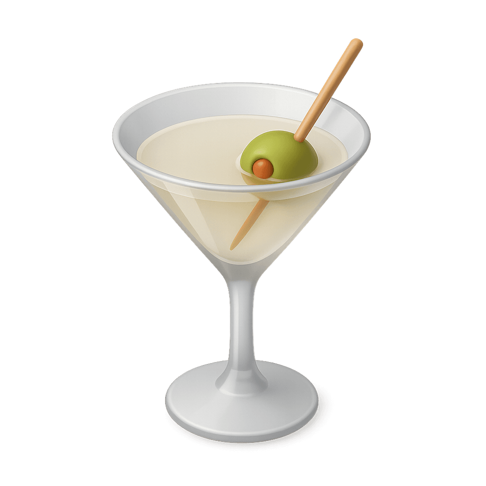 A classic cocktail made with gin and dry vermouth, typically garnished with an olive or a lemon twist. Known for its elegance and association with sophisticated social settings.