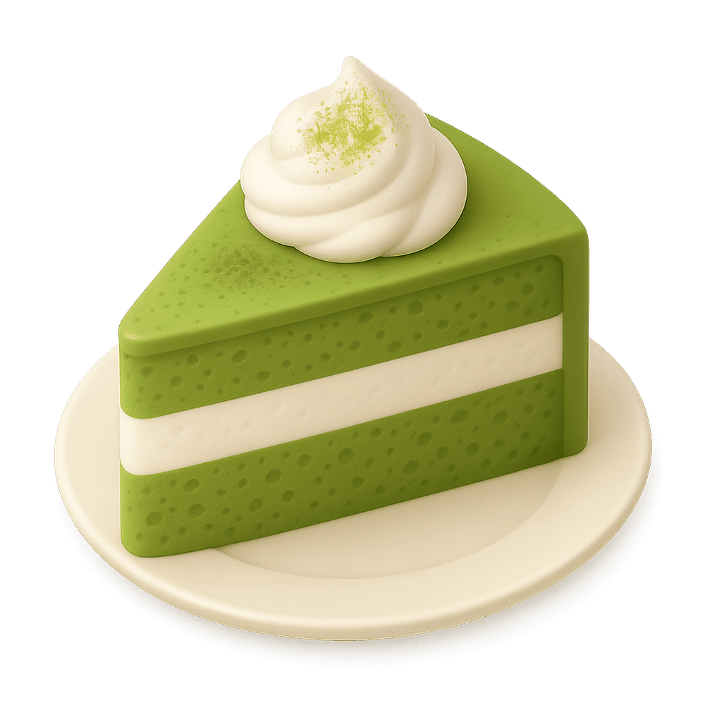 A light, fluffy cake infused with finely ground matcha green tea powder, offering a unique blend of earthy flavors and vibrant green color. Popular in Japanese cuisine, this dessert is both visually striking and deliciously sweet.