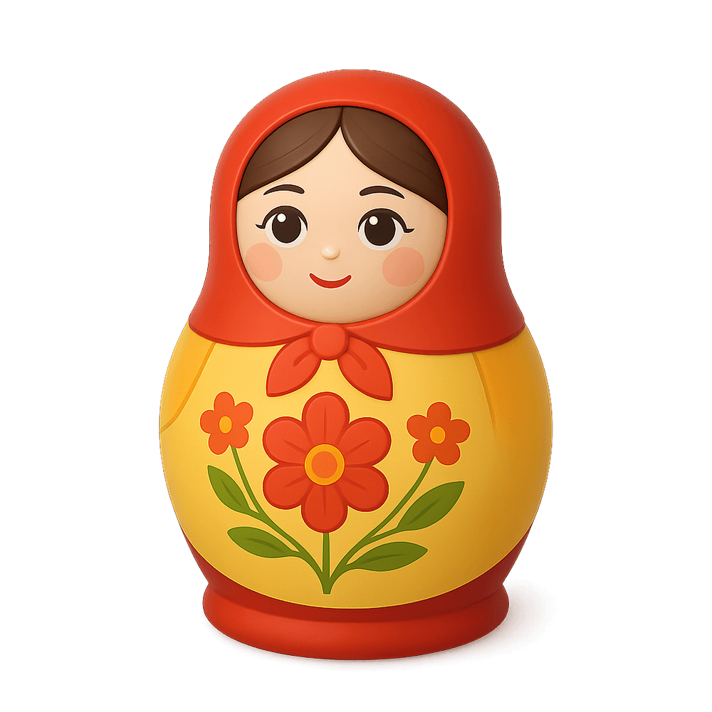 A Matryoshka Doll, also known as a Russian nesting doll, is a set of wooden dolls of decreasing size placed one inside another. Originating in Russia, these dolls are a symbol of family, tradition, and cultural heritage.