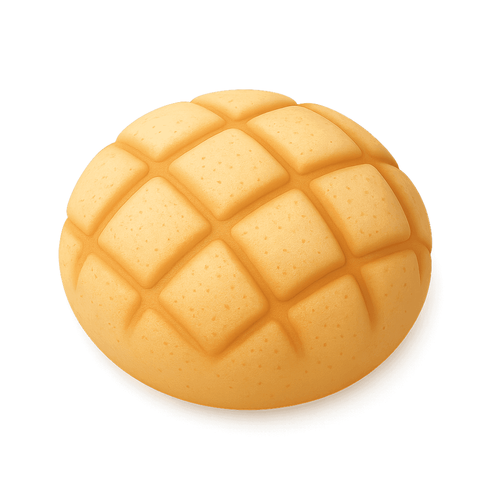 Melon Pan is a popular Japanese sweet bread with a soft, fluffy interior and a crisp, cookie-like crust. Its name comes from its melon-like appearance, though it typically does not contain melon flavor. Often enjoyed as a snack or dessert.