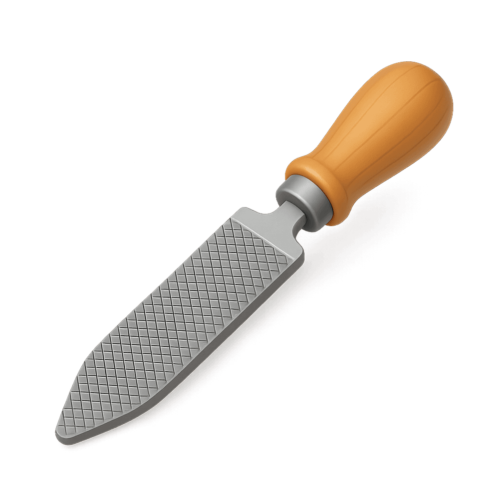 A metalworking file is a hand tool used to shape, smooth, or remove material from metal surfaces. It features a hardened steel bar with a series of parallel teeth and is essential in metal fabrication and finishing processes.