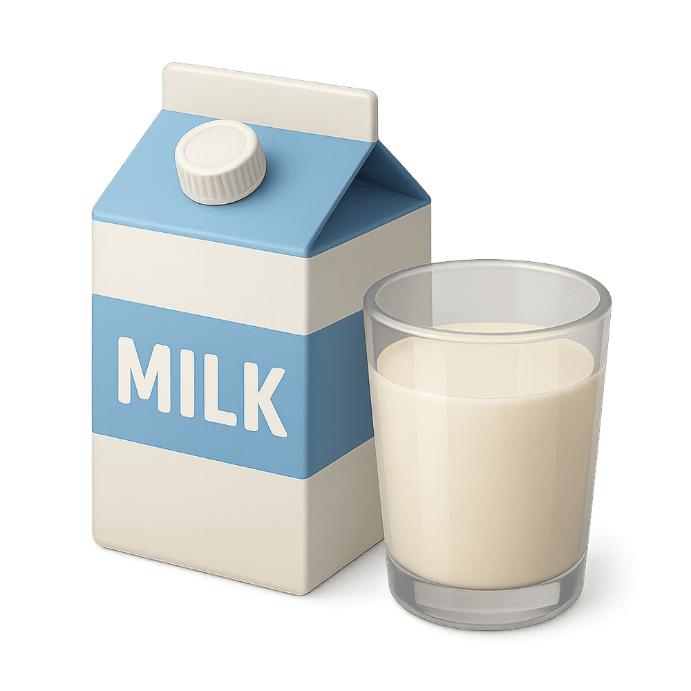 A basic, nutritious liquid food produced by mammals, commonly consumed as a beverage or used as an ingredient in cooking and baking. Milk is a staple in many diets around the world and serves as the foundation for various dairy products.