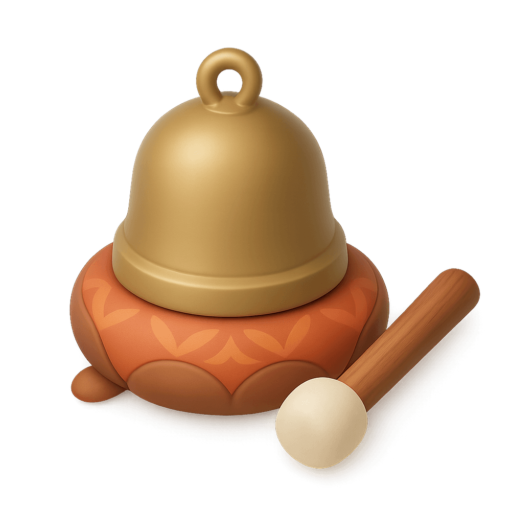 A Mindfulness Bell is a tool used to signal moments for mindful breathing, meditation, or reflection. Its gentle sound serves as a reminder to pause, focus, and cultivate awareness, often used in wellness practices and meditation sessions.