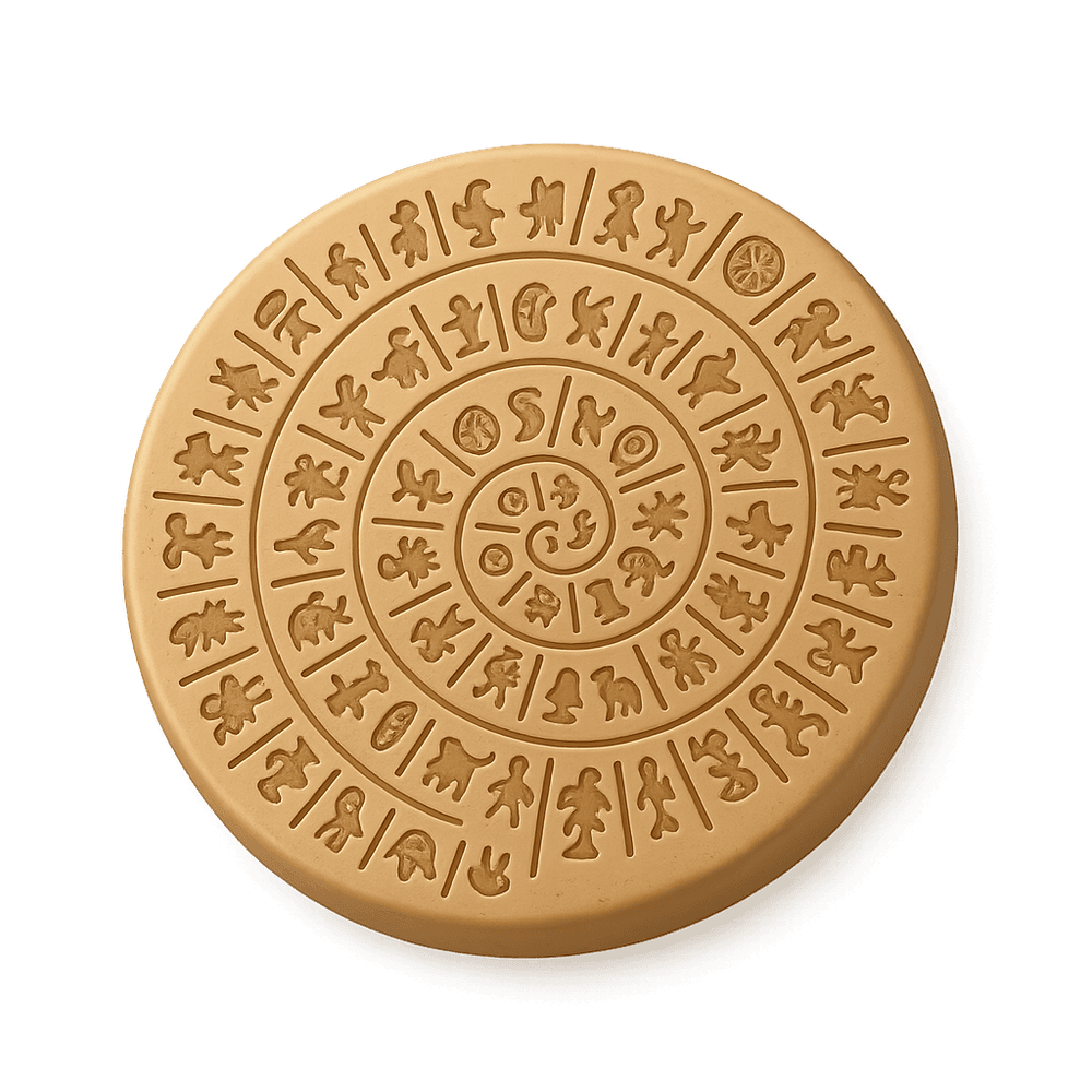 The Minoan Phaistos Disc is a mysterious clay artifact from ancient Crete, featuring a spiral of stamped symbols. Its purpose and meaning remain undeciphered, making it a unique relic of Bronze Age civilization.
