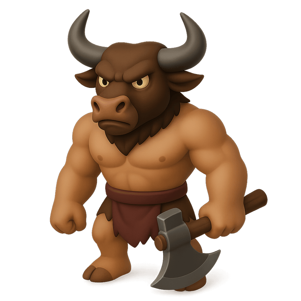 A Minotaur is a legendary creature from Greek mythology, depicted as having the body of a man and the head of a bull. Known for its strength and ferocity, the Minotaur famously dwelled in the labyrinth of Crete.