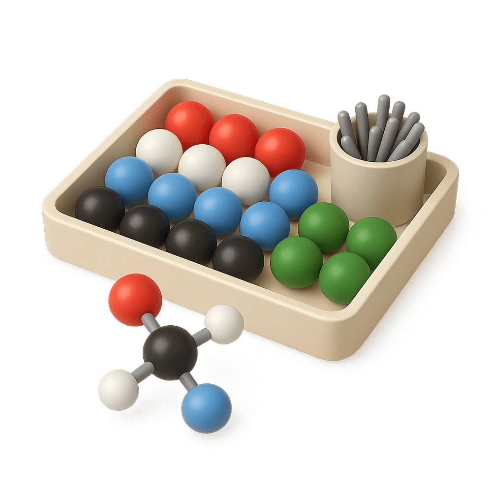 A Molecular Model Kit is an educational tool used to visually represent the structure of molecules. It typically includes colored balls and connectors to simulate atoms and chemical bonds, helping students and scientists understand molecular geometry and chemical interactions.