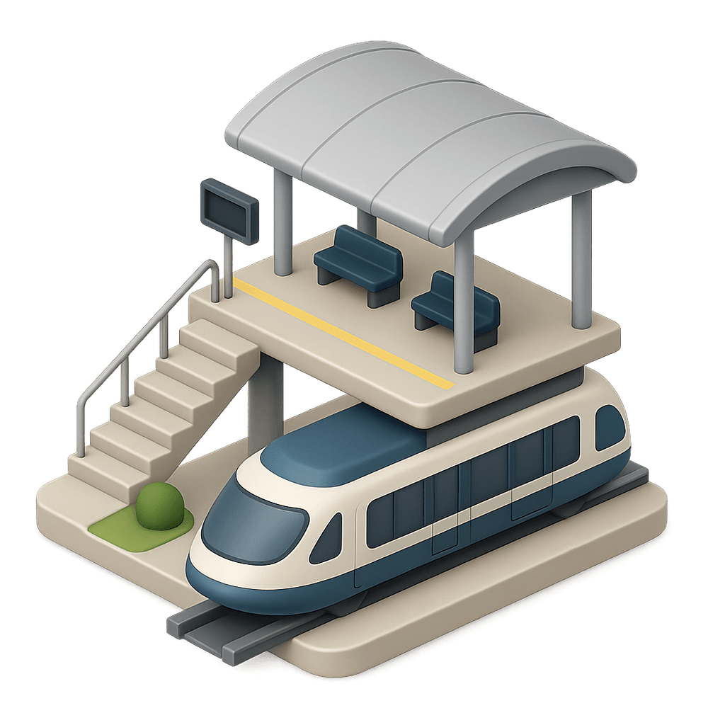 A monorail station is a designated structure where passengers can board and disembark from monorail trains, typically found in urban or entertainment areas. It serves as a key node in public transportation networks, providing access, shelter, and amenities for travelers.