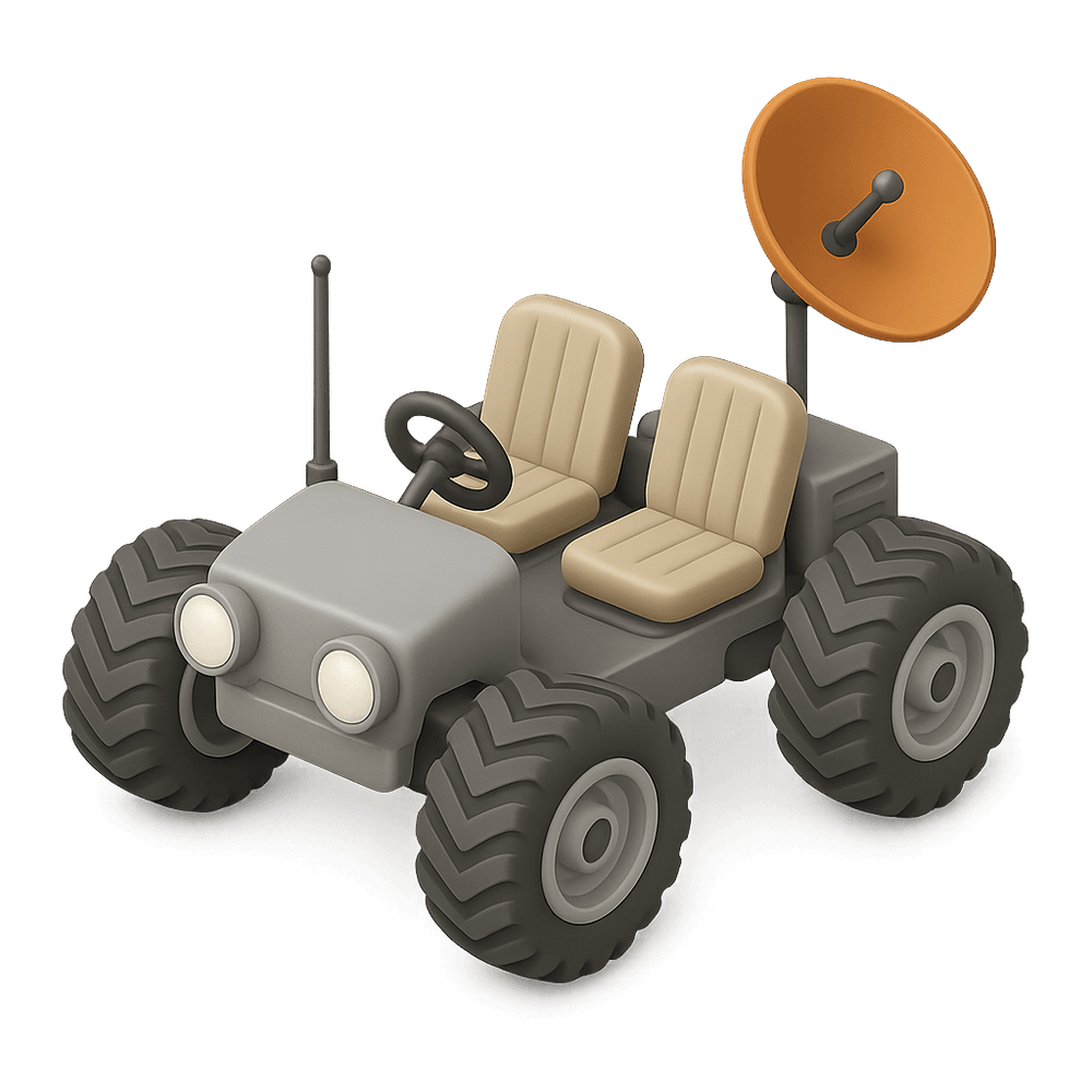 A Moon Buggy is a specialized vehicle designed for transporting astronauts and equipment across the surface of the Moon. It is lightweight, electrically powered, and built to handle the Moon's low gravity and rough terrain.