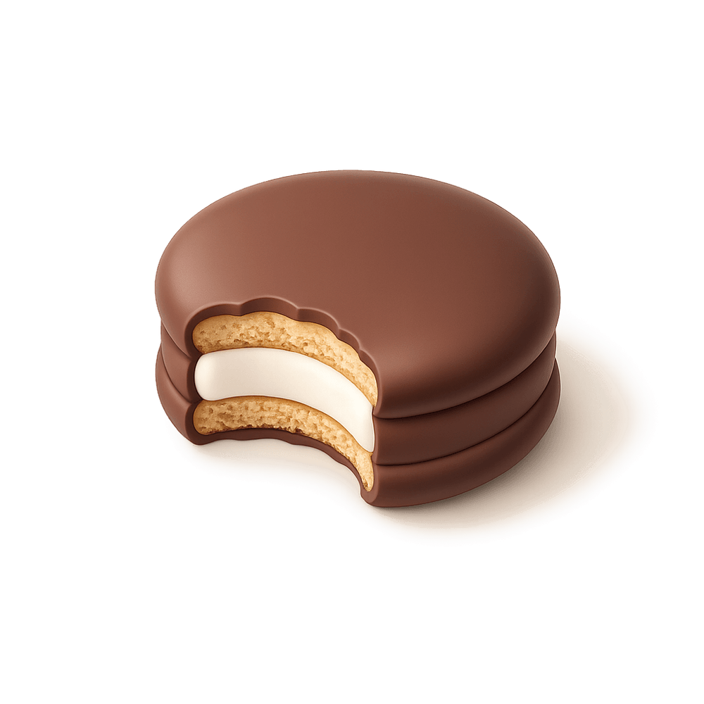 A Moon Pie is a classic American snack consisting of marshmallow filling sandwiched between two round graham cracker cookies, coated in chocolate or other flavors. Popular in the Southern United States, it's a nostalgic treat often enjoyed with a cold drink.