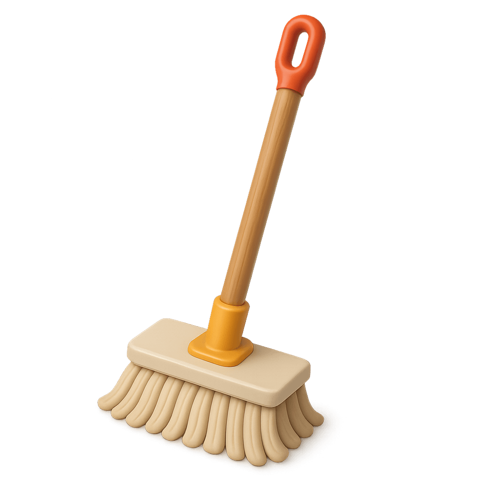 A mop is a cleaning tool consisting of absorbent material attached to a long handle, used for wiping and scrubbing floors. It is commonly found in households and workplaces for everyday cleaning tasks.