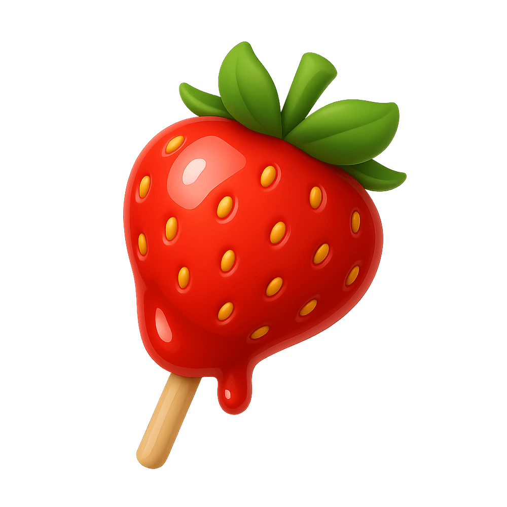 A traditional Brazilian treat, 'Morango do Amor' is a fresh strawberry coated in a hard, glossy layer of caramelized sugar, often enjoyed at festivals and fairs as a sweet snack.