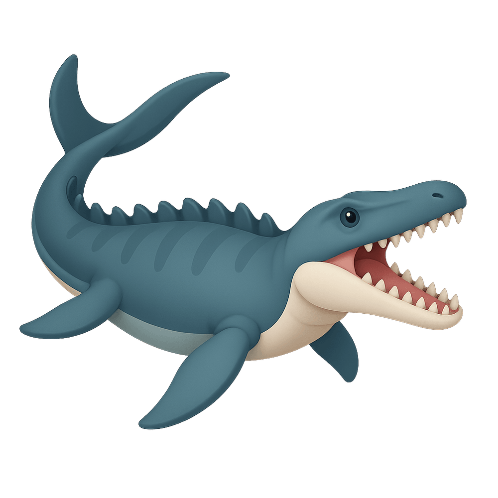 The Mosasaur was a large, marine reptile that lived during the Late Cretaceous period. Known for its elongated body, powerful jaws, and sharp teeth, it was a dominant predator in ancient oceans before going extinct.