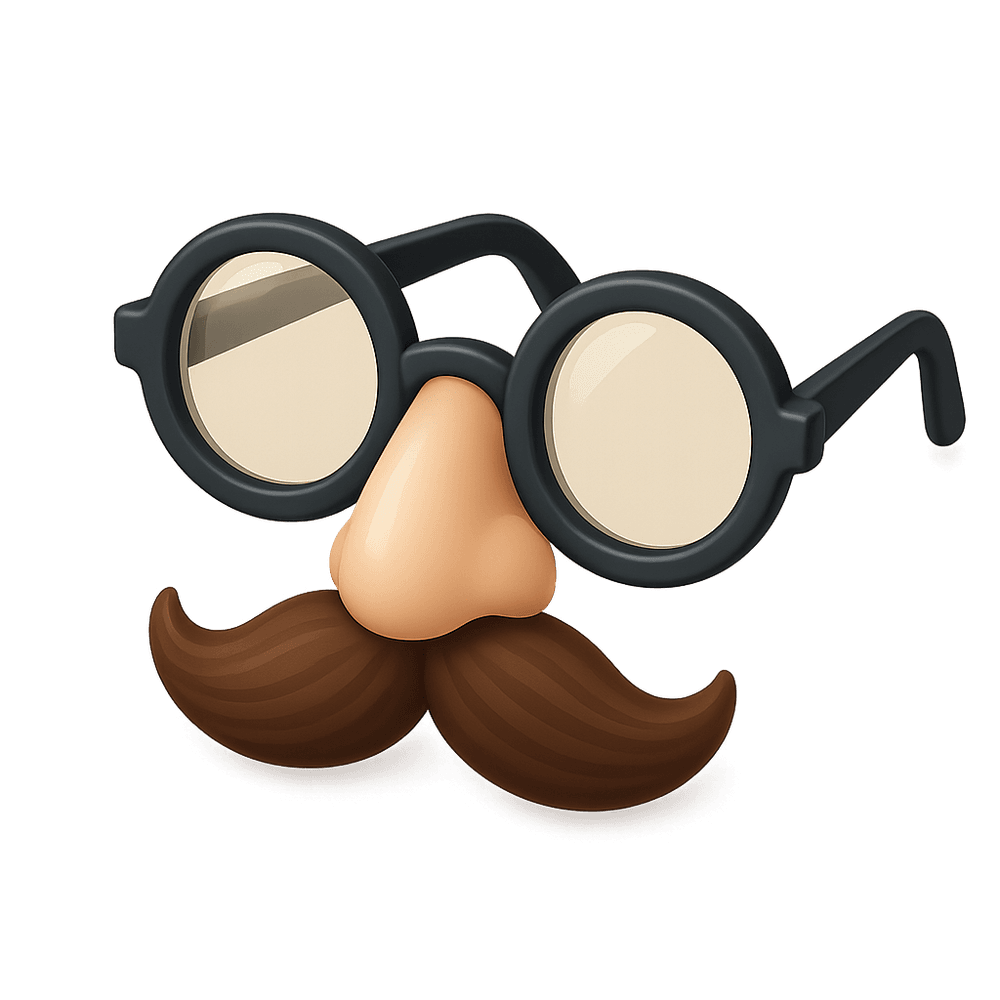 A playful disguise accessory featuring glasses with an attached fake moustache, often used for comedic effect at parties, performances, or as a novelty gift.