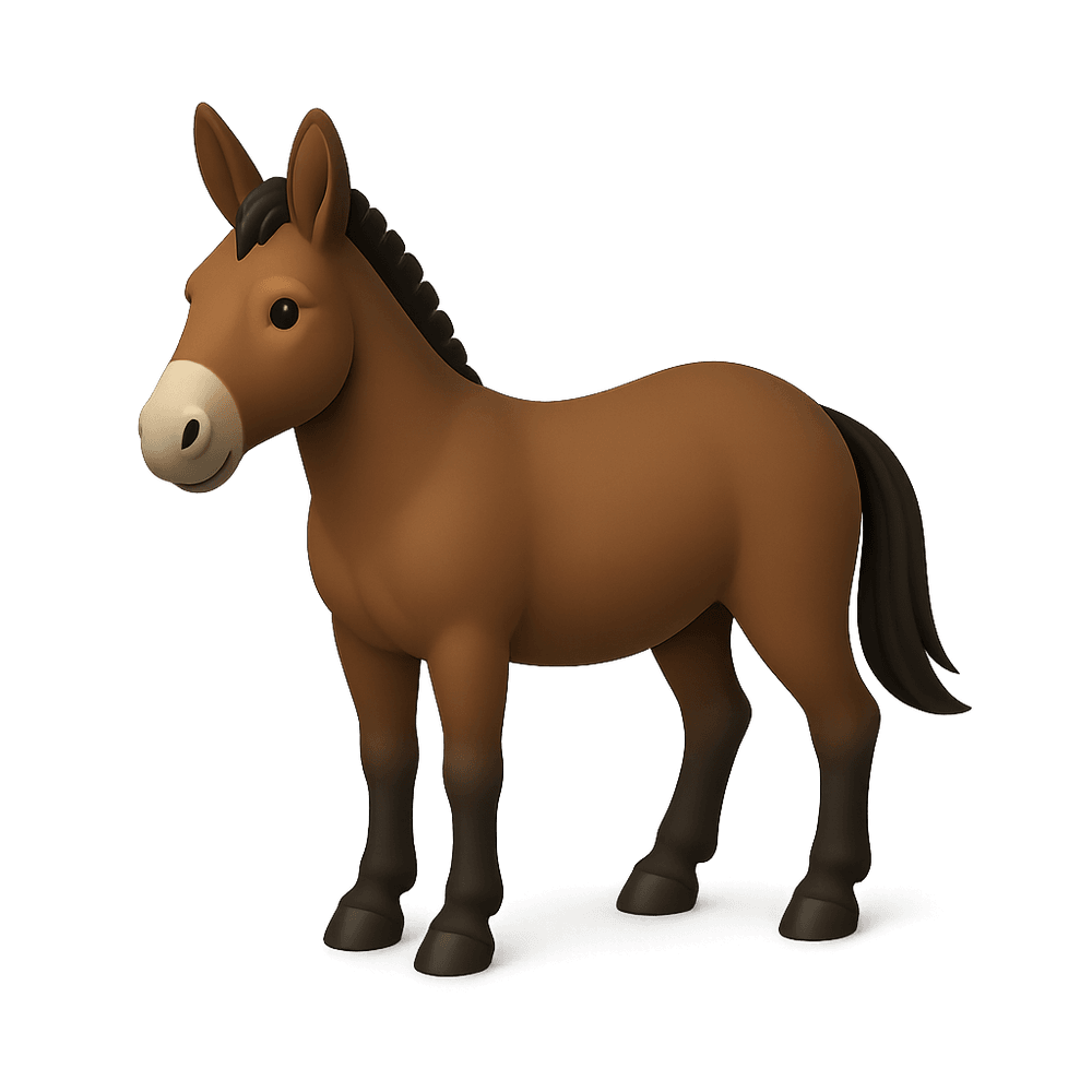 A mule is a hybrid animal, the offspring of a male donkey and a female horse. Known for its strength, endurance, and sure-footedness, mules are commonly used as working animals in agriculture and transport.