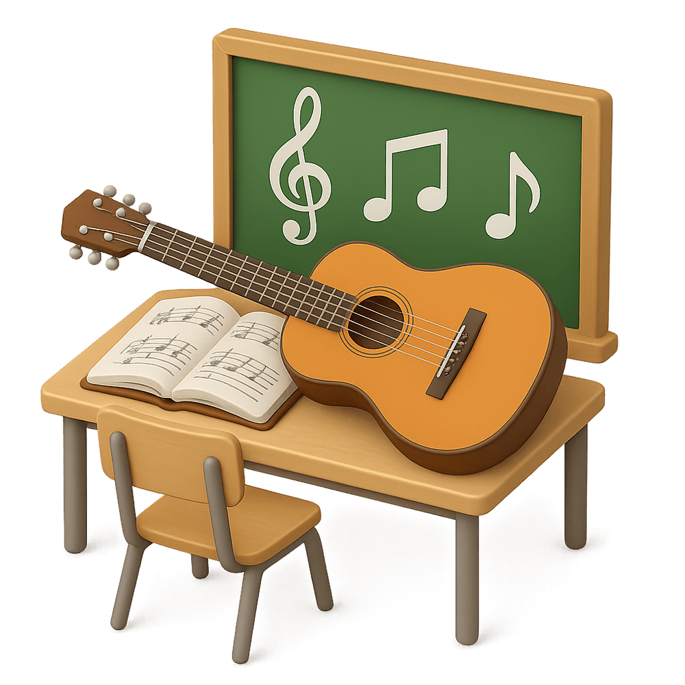 A music class is a group learning session where participants are taught musical concepts, instruments, or vocal techniques, often involving practice, performance, and collaboration. It is a common activity in everyday life for skill development and enjoyment.