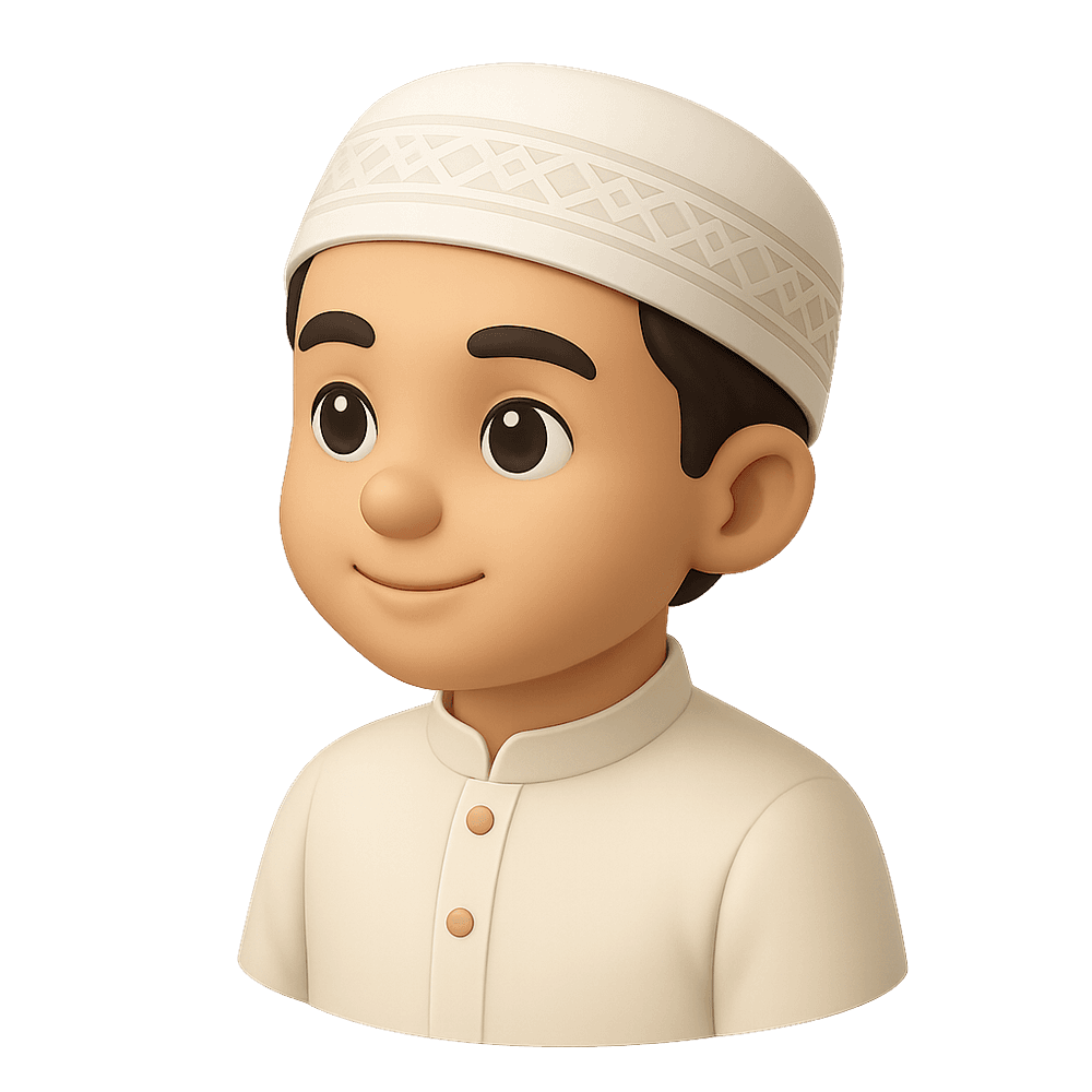 A young Muslim boy wearing a traditional Islamic hat, representing cultural and religious identity. This object highlights the significance of Islamic attire in daily life and cultural practices.