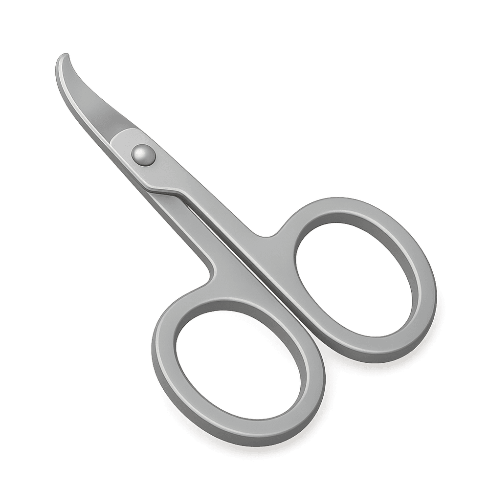 Nail scissors are small, curved scissors designed for trimming fingernails and toenails with precision. They are a common personal care tool used for grooming and hygiene in everyday life.