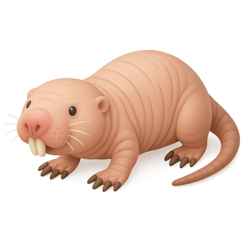 The naked mole rat is a small, burrowing rodent native to East Africa. Known for its hairless, wrinkled skin and remarkable resistance to cancer, it lives in underground colonies and exhibits unique social behavior similar to insects. Naked mole rats are also notable for their longevity and ability to survive in low-oxygen environments.