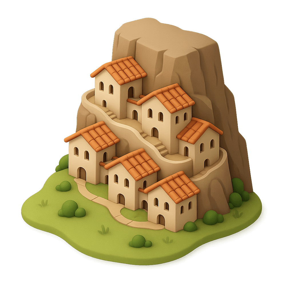 Nesting Cliff Village is a unique settlement built into the side of a steep cliff, featuring interconnected homes and pathways that offer breathtaking views and natural protection. Its architecture blends seamlessly with the rocky landscape, creating a harmonious community perched above the surrounding terrain.