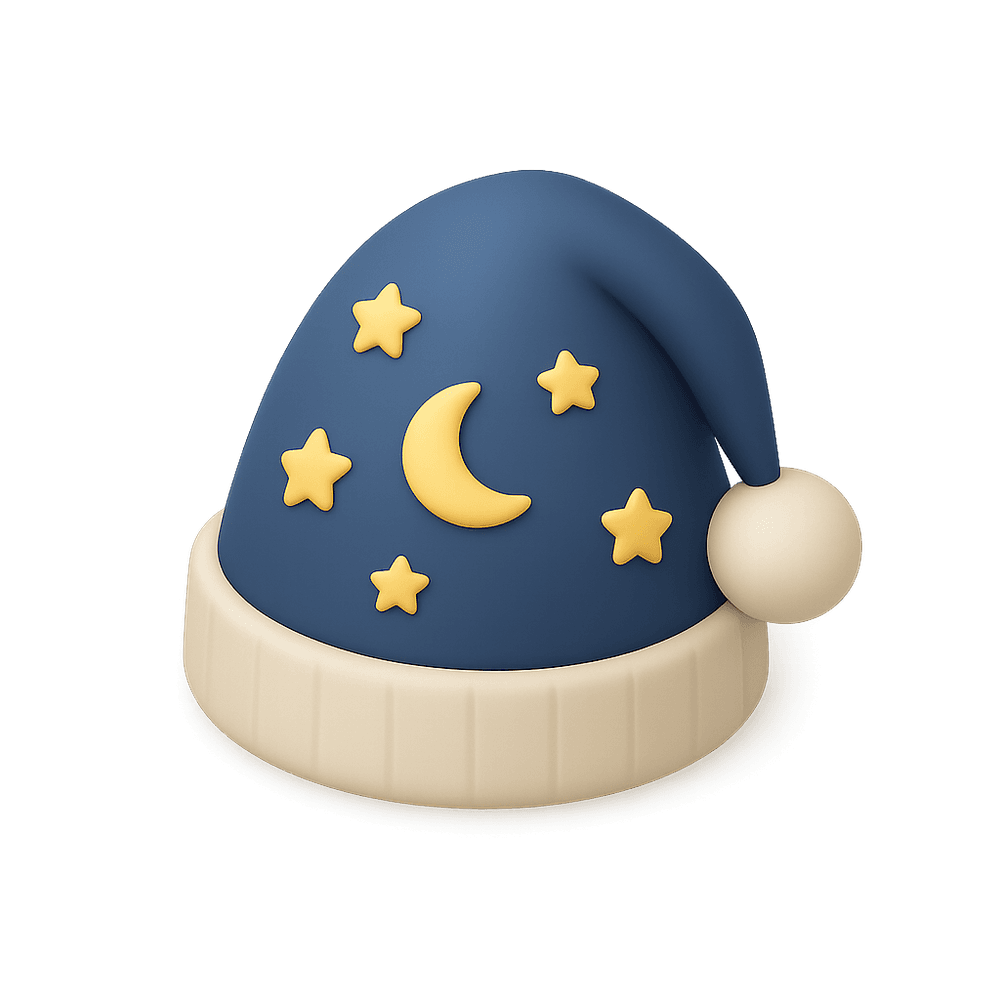 A night cap is a soft, close-fitting hat traditionally worn while sleeping to keep the head warm. Often made from cotton or wool, it was a common bedtime accessory in earlier centuries and is now a nostalgic or vintage fashion item.
