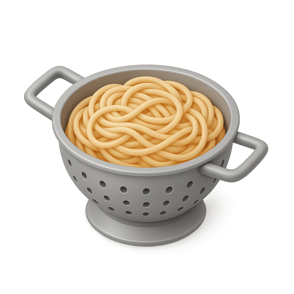 A noodle strainer is a kitchen utensil used to drain water from cooked noodles or pasta. It typically features a bowl-shaped mesh or perforated surface that allows liquid to pass through while retaining the noodles. Essential for preparing a variety of pasta and noodle dishes, it is a staple in everyday cooking.