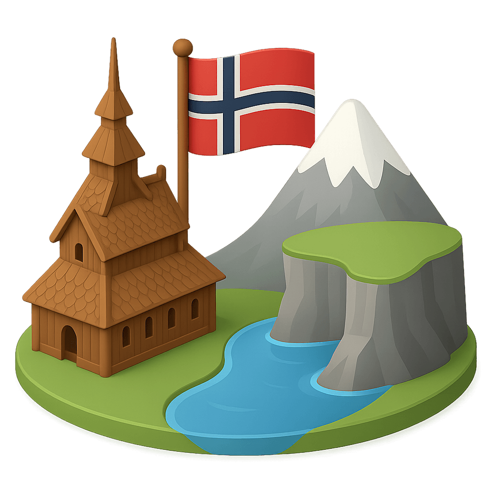 Norway is a country in Northern Europe, known for its stunning fjords, mountainous terrain, and extensive coastline along the North Atlantic Ocean. It is famous for its natural beauty, high standard of living, and rich Viking history.