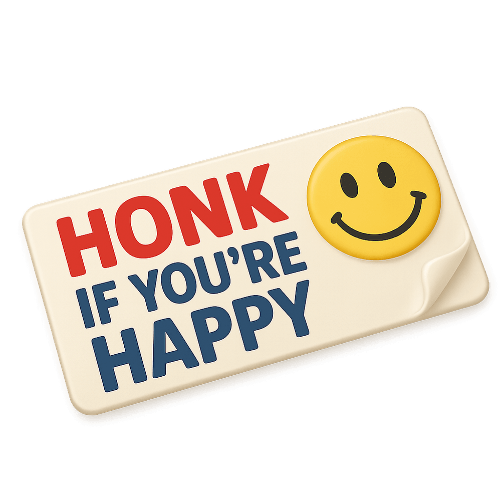 A novelty bumper sticker is a humorous or clever adhesive label designed to be placed on vehicles, often used to express personality, opinions, or jokes. Popular in entertainment and leisure, these stickers are collectible and serve as a fun form of self-expression.