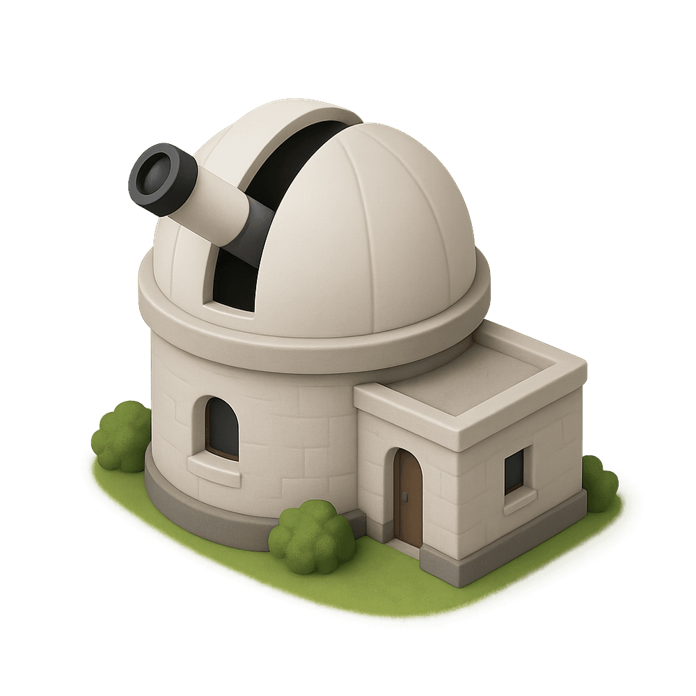 A building or structure equipped with telescopes and other instruments for observing celestial events, stars, and planets. Observatories are often located in remote or elevated areas to minimize light pollution and maximize visibility of the night sky.