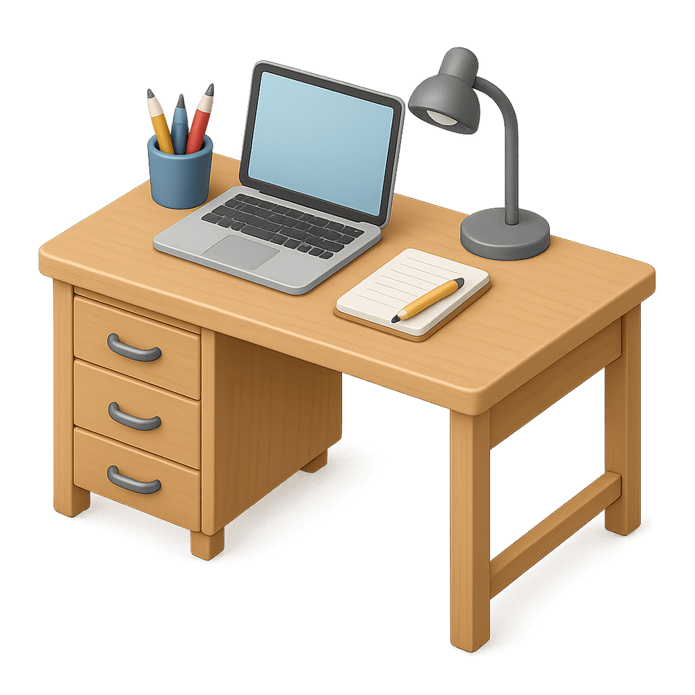 A sturdy table designed for office or professional environments, providing a dedicated workspace for tasks such as writing, computer work, and organization. Often features drawers or compartments for storage.