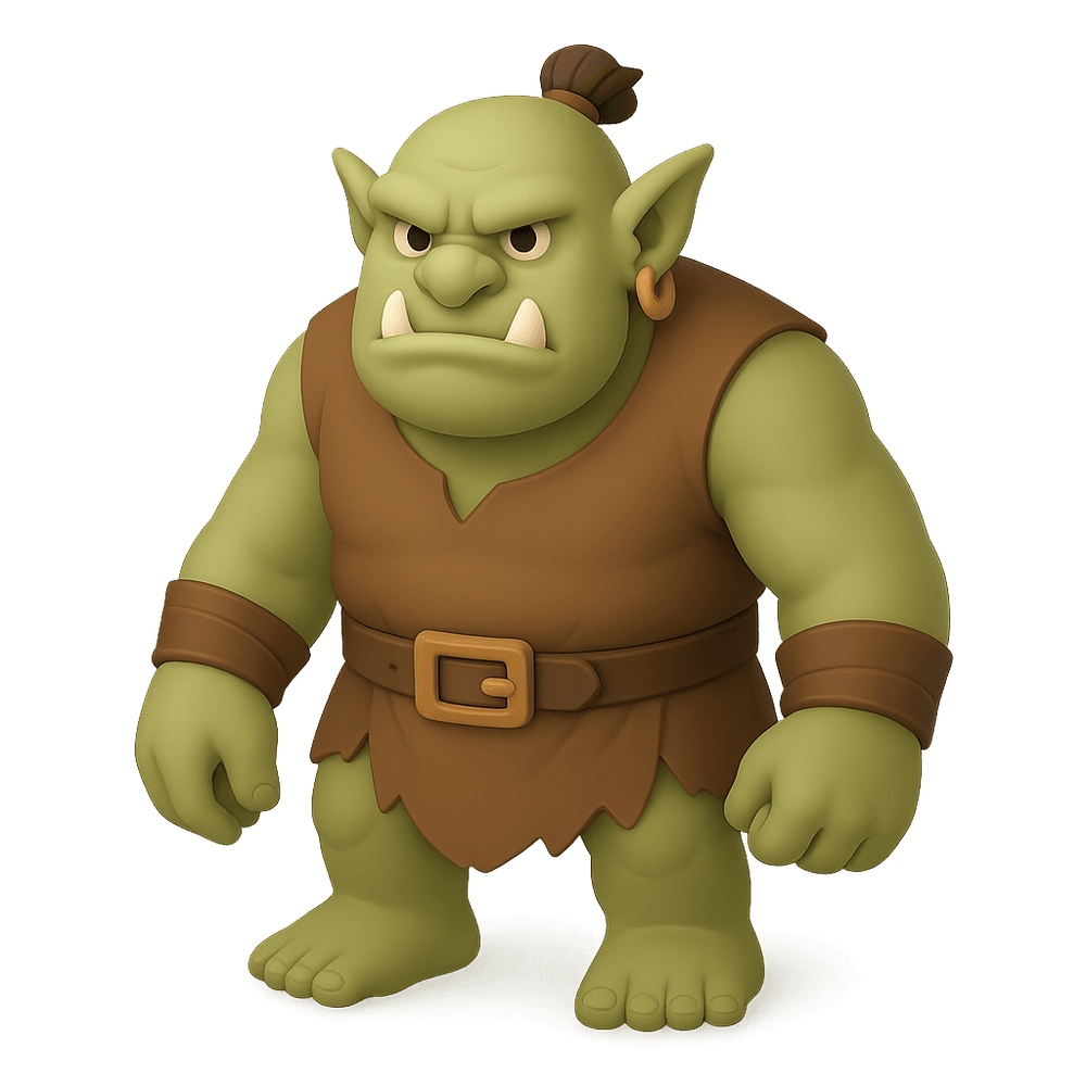 A large, fearsome creature from folklore and fantasy, ogres are often depicted as brutish, monstrous beings with great strength and a menacing appearance. They are common antagonists in fairy tales and mythological stories.