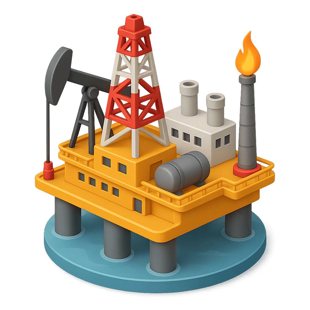 A large offshore platform used for extracting oil and gas from beneath the ocean floor. Oil rigs are complex industrial structures that support drilling, production, and housing for workers in remote marine environments.