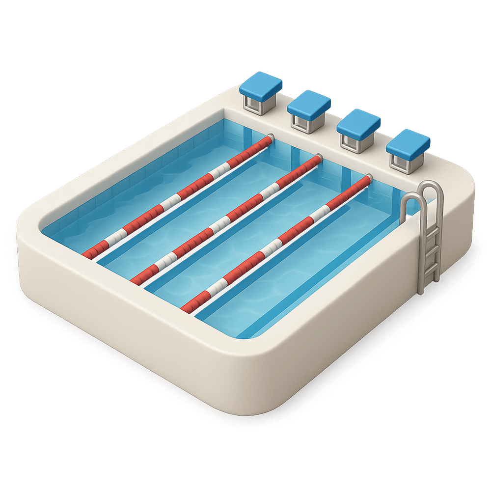 A large, standardized swimming pool used for international competitions, including the Olympic Games. It measures 50 meters in length and is designed for professional swimming events and training.