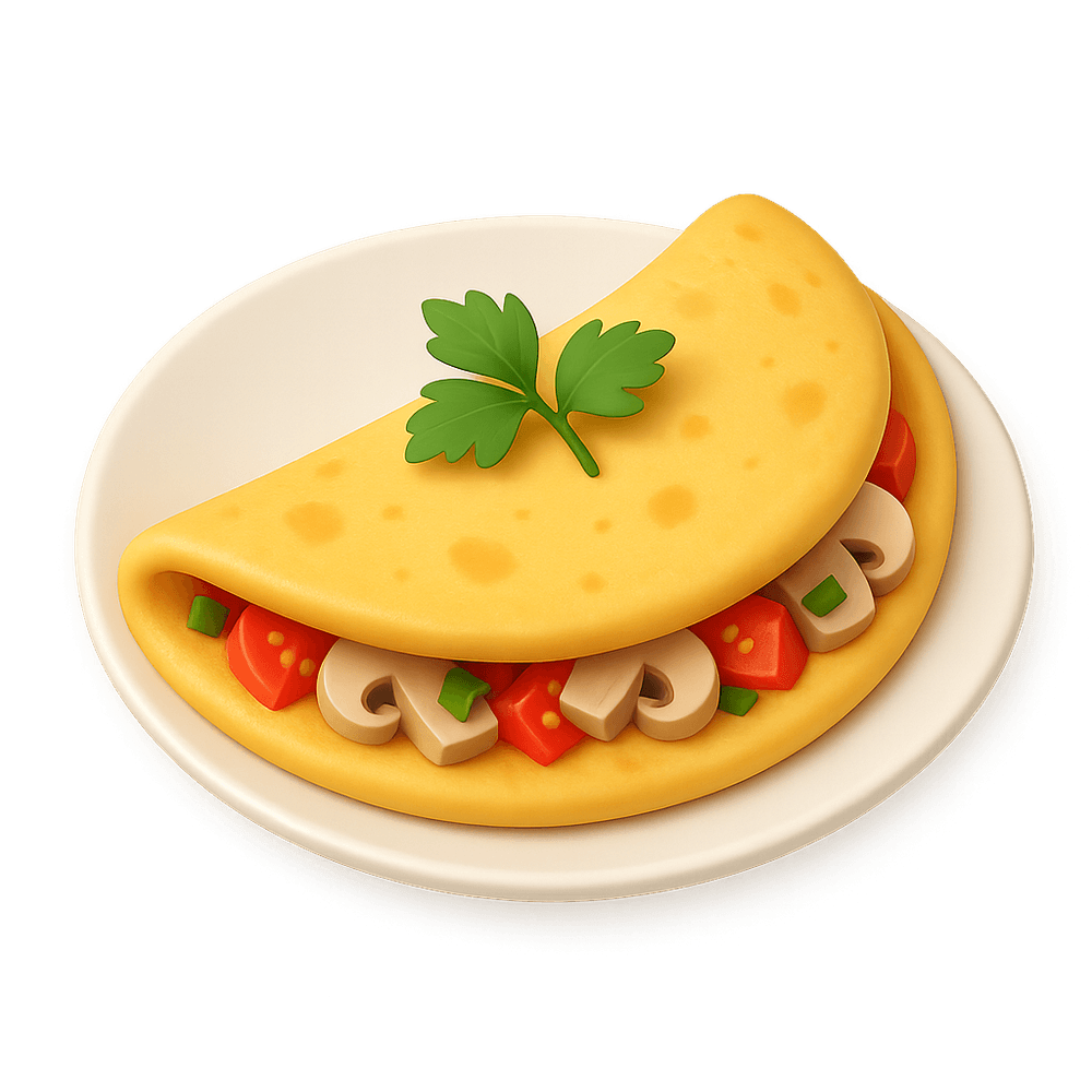A classic dish made by beating eggs and cooking them in a frying pan, often with added ingredients like cheese, vegetables, or meats. Omelettes are popular for breakfast and can be customized with various fillings.