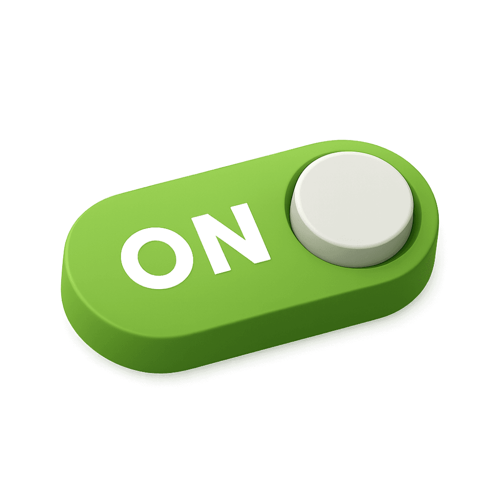 A graphical or physical control used to activate or enable a device, function, or system. Commonly represented as a button or toggle symbolizing the 'on' state in user interfaces and electronics.